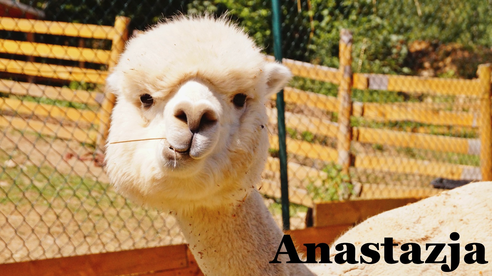 biała, przyjacielska alpaka rasy huacaya, zawsze pierwsza na spotkanie ( zwłaszcza gdy pojawiają się marchewki)