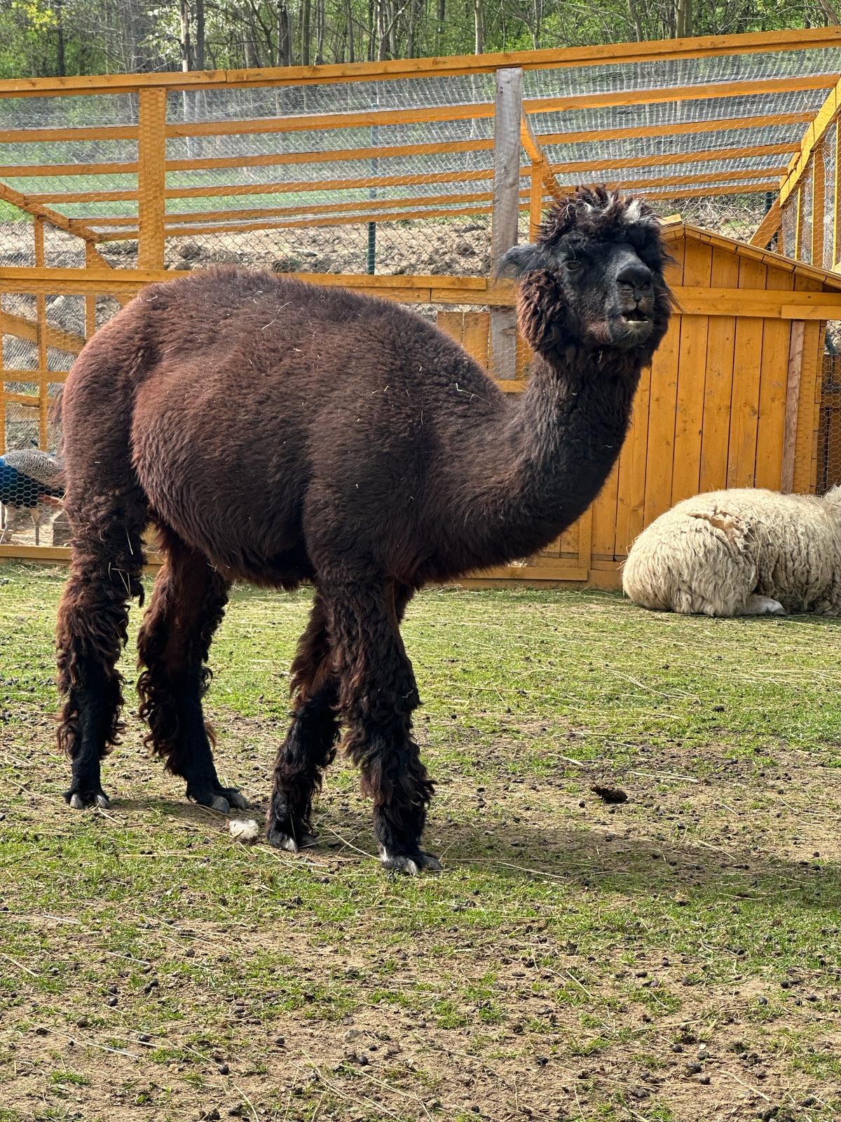 brązowa, przyjacielska alpaka rasy huacaya, zawsze pierwsza na spotkanie ( zwłaszcza gdy pojawiają się marchewki)